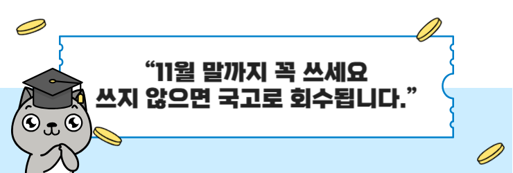 - ⏳ 11월 말까지 사용 (기한 내 사용하지 않으면 국고로 환수)